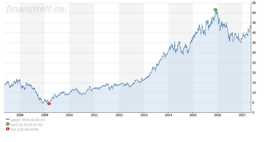 Auch im 10 Jahreschart zeigt sich diese Wachstumsstory deutlich. So konnte sich die Aktie alleine nach 2009 verzehnfachen. Was für eine Entwicklung!